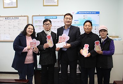 후원금 전달(동문사리 이장 이승선님, 강성건설 강성민대표, 동문4리 개발위원회, 새마을 남녀지도자)