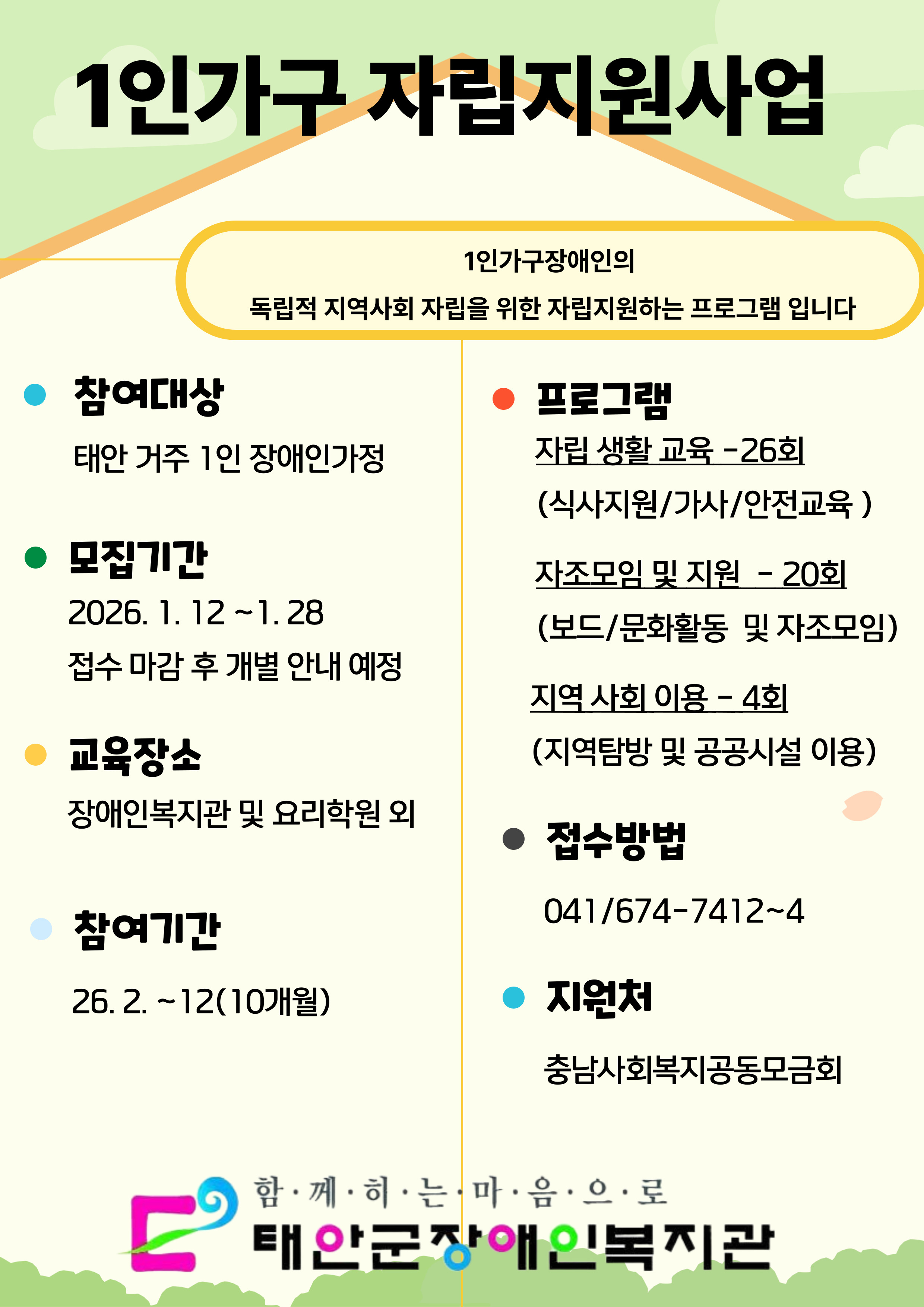태안군장애인복지관 2026년 세입 세출 예산 공고