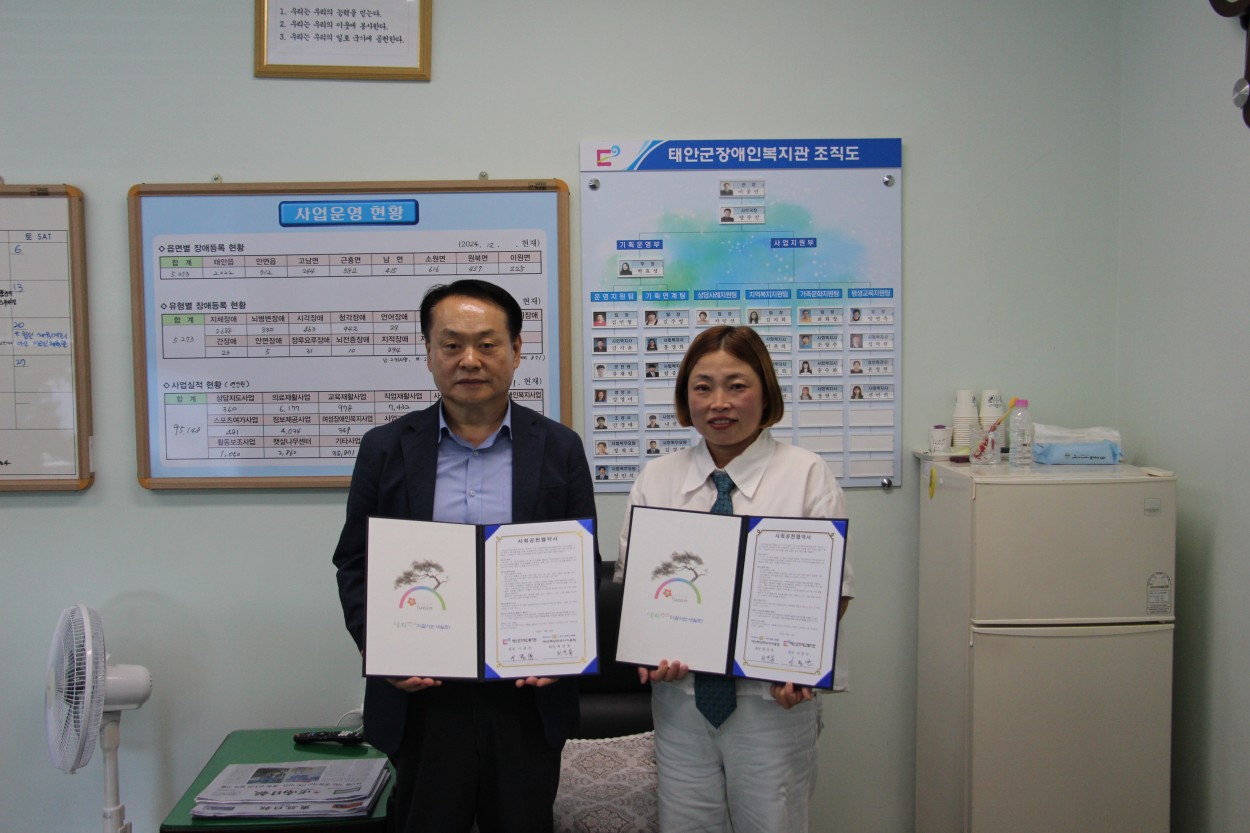 태안해당화 로타리클럽 협약식 복지관 0 7 3시간전 9.20 해당화 로타리 클럽과 협약식을 진행하였습니다. 협약 체결을 통하여 지역장애인의 복지증진을 위한 지역사회공헌활동 추진체계를 마련하여 상호 간의 유기적인 연대를 통해 지역장애인의 복지 발전 도모하고자 마련된 자리입니다