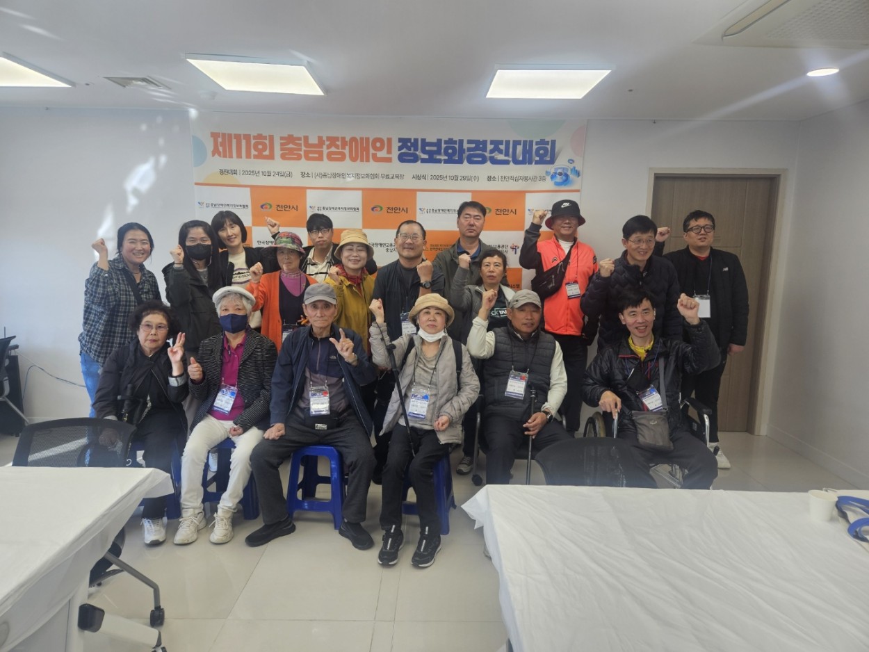 제11회 충남장애인정보화경진대회 참여 평생교육지원팀윤정현 0 14 10.27 17:37 10월 24일(수) 충남장애인정보화경진대회가 천안 충남장애인복지정보화협회 무료교육장에서 개최 되었다.*문서작성(일반부) *파워포인트(일반부) *엑셀(일반부) *문서작성(고령부) *파워포인트(고령부) 등 다양한 부문에 참여하여 차분한 집중력과 열정도 발휘했다. 복지관으로 돌아오는 길에 아산온양민속박물관 및 온양카페에 들러 화창한 가을도 만끽해 보았다. 모두 모두 수고 하셨습니다^^