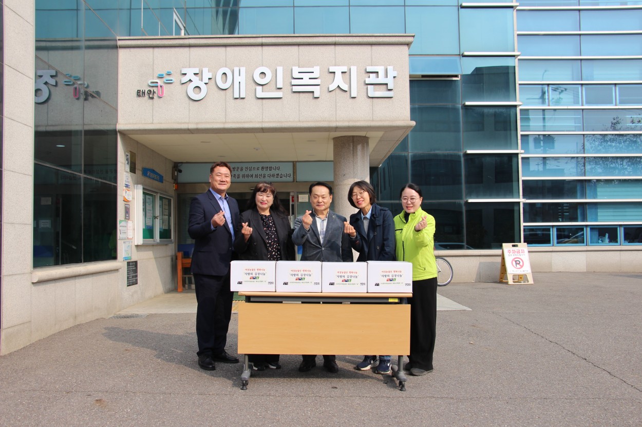 김치후원-(사)한국여성농업인 태안군연합회 복지관 0 4 2시간전 태안군 여성농업인 협회에서 '여성 농업인의 행복나눔 사랑의 김장나눔' 행사를 진행하여 우리복지관에 김치를 후원해 주셨습니다귀한 손길로 찾아와서 후원해 주신 여성농업인 여러분께 깊은 감사의 인사를 드립니다
