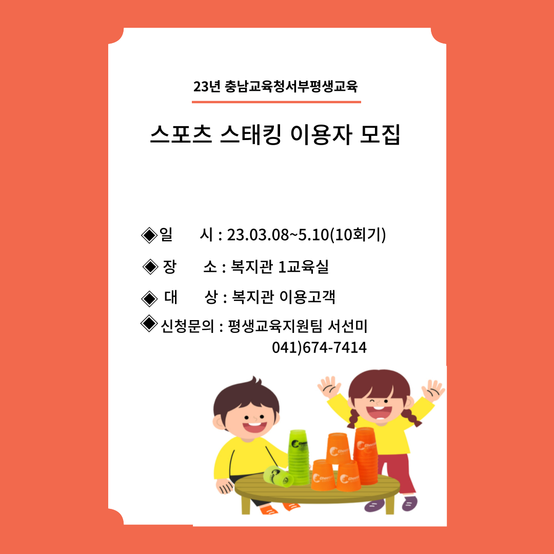 23년 충남교육청서부평생교육 스포츠 스태킹 이용자 모집