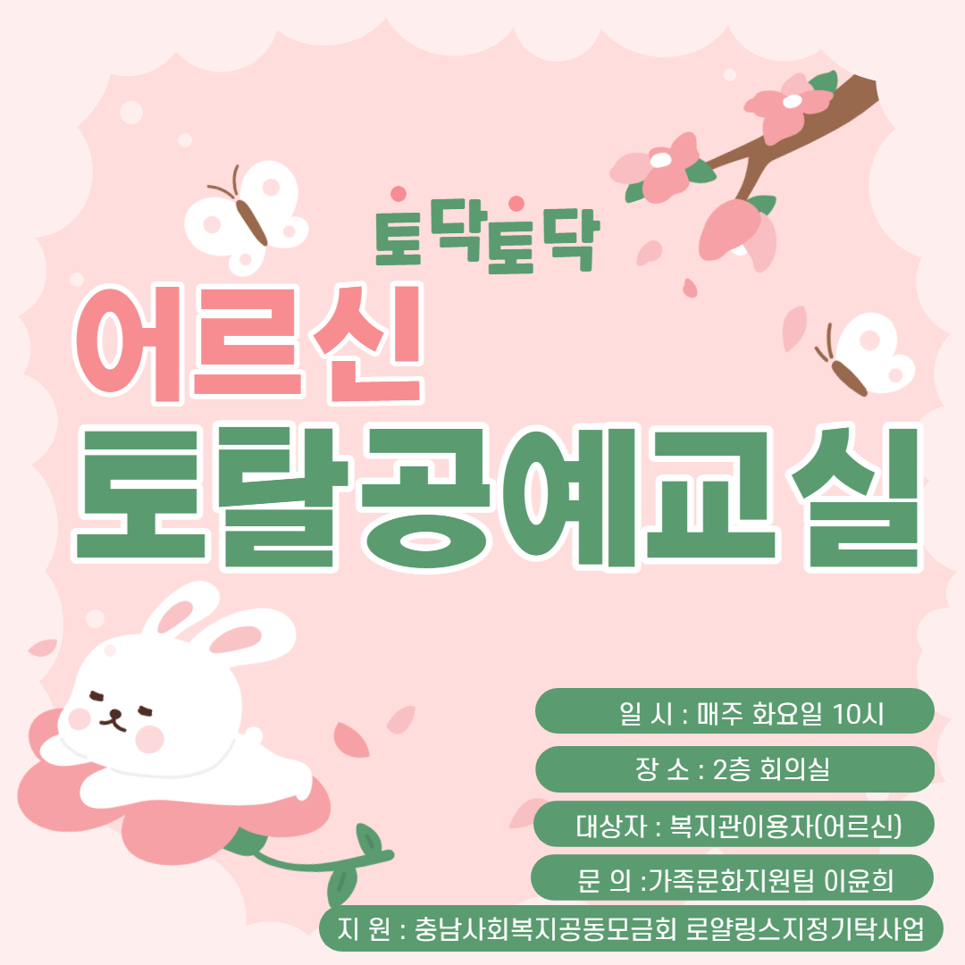 어르신 토탈공예 교실에 많은 관심과 참여 바랍니다.