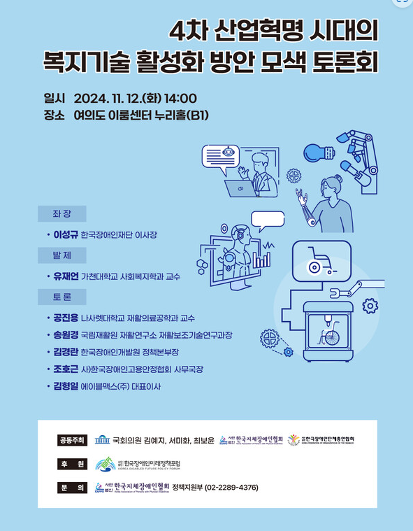 「4차 산업혁명 시대의 복지기술 활성화 방안 모색 토론회」개최 안내