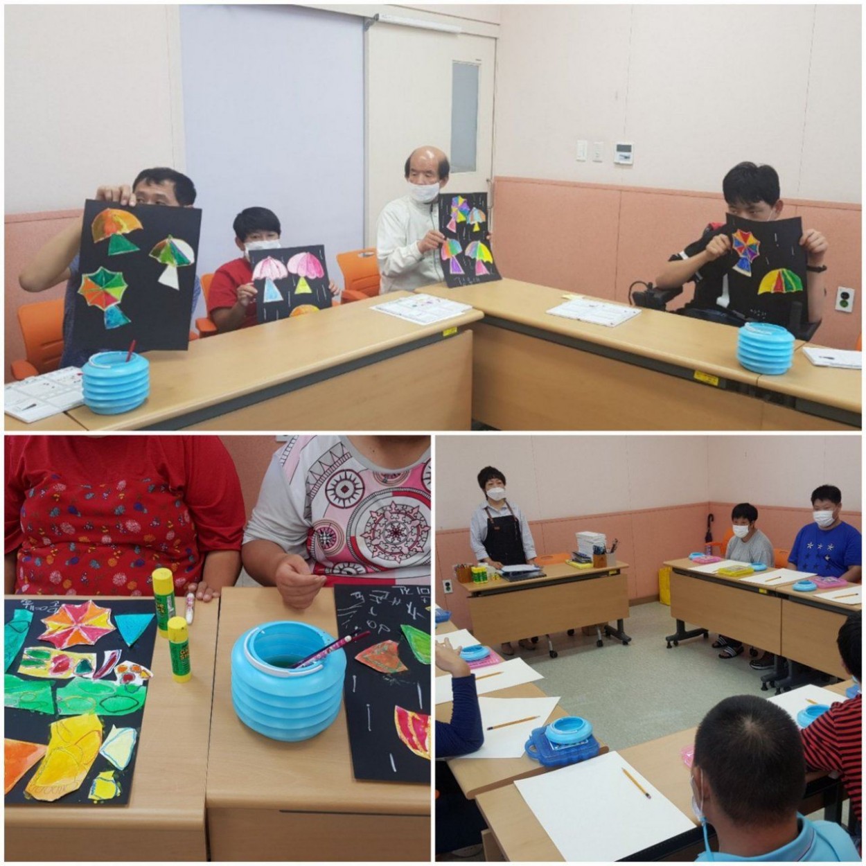 충남문화재단 문화예술교육 배달사업 \"예술에 담긴 자연\" 프로그램 시작 방연옥 0 1399 2020.08.31 11:27 충남문화재단 문화예술교육 배달사업 미술교실 "예술에 담긴 자연" 프로그램이 코로나19발생으로 우여곡절끝에 8월 11일 드디어 수업을 시작하게 되었습니다. 발달장애가 있는 복지관 이용 고객들을 대상으로 진행된 프로그램은 앞으로 15회기동안 다양한 미술활동을 접하고 향유하는 귀한 시간이 될것을 기대합니다.