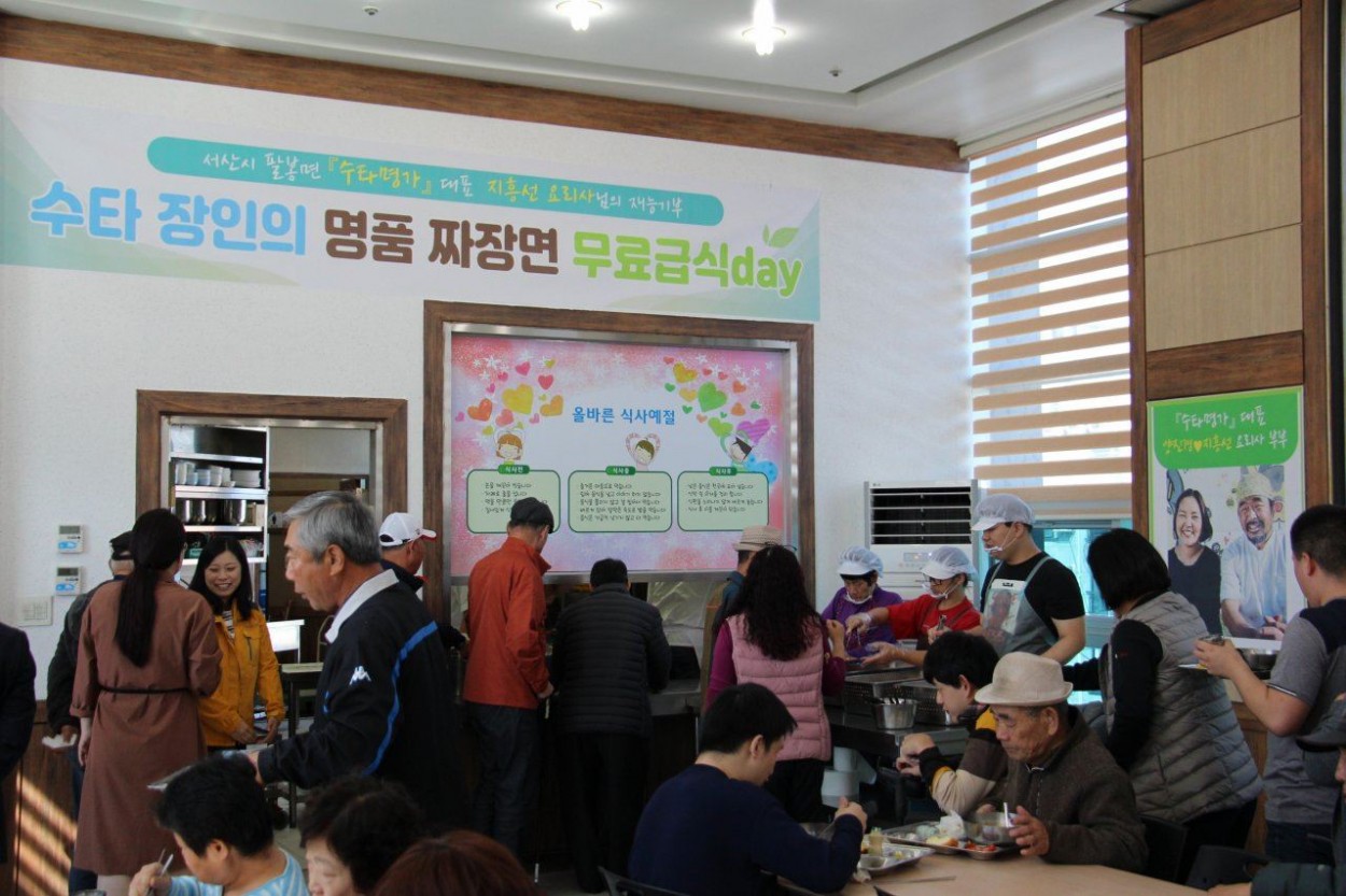 서산시 팔봉면에 위치한 「수타 명가」 지흥선 대표는 지난 28일 태안군장애인복지관(관장 이종만)을 찾아 100여명의 장애인 가족들에게 지장면을 제공하였다.