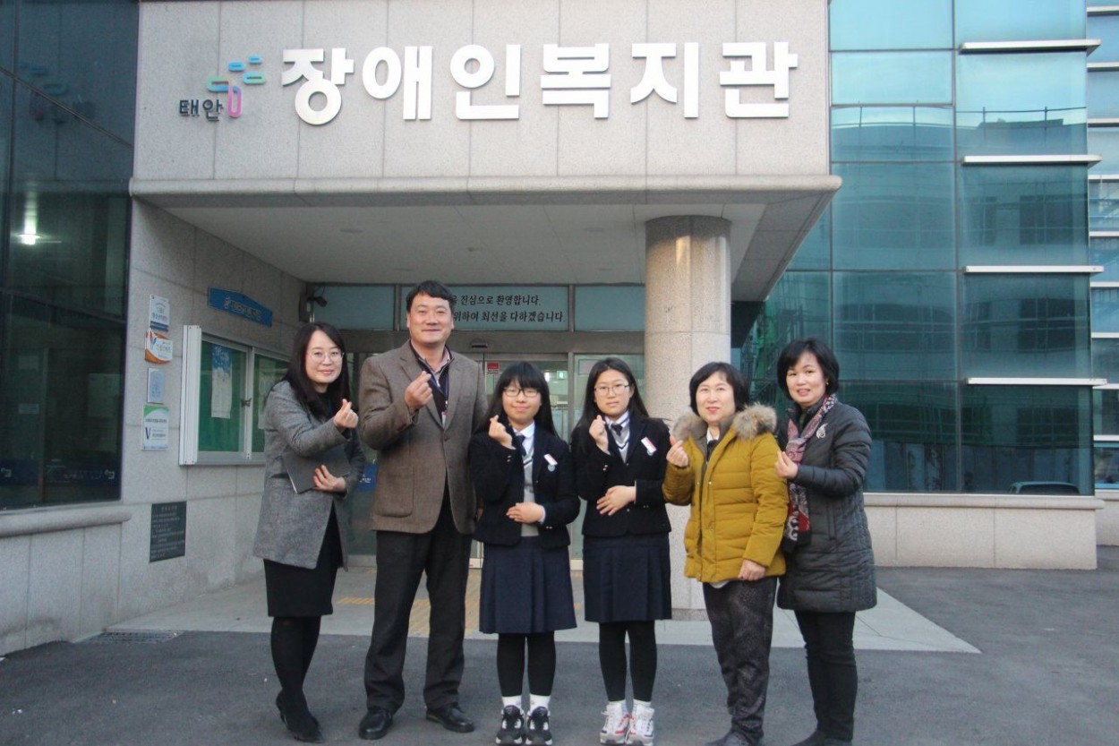 태안여자중학교(교장 임흥순) Wee클래스 또래상담사들이 행복나눔 바자회를 개최하고 그 수익금을 태안군장애인복지관(관장 이종만)에 전액 기부하였다.