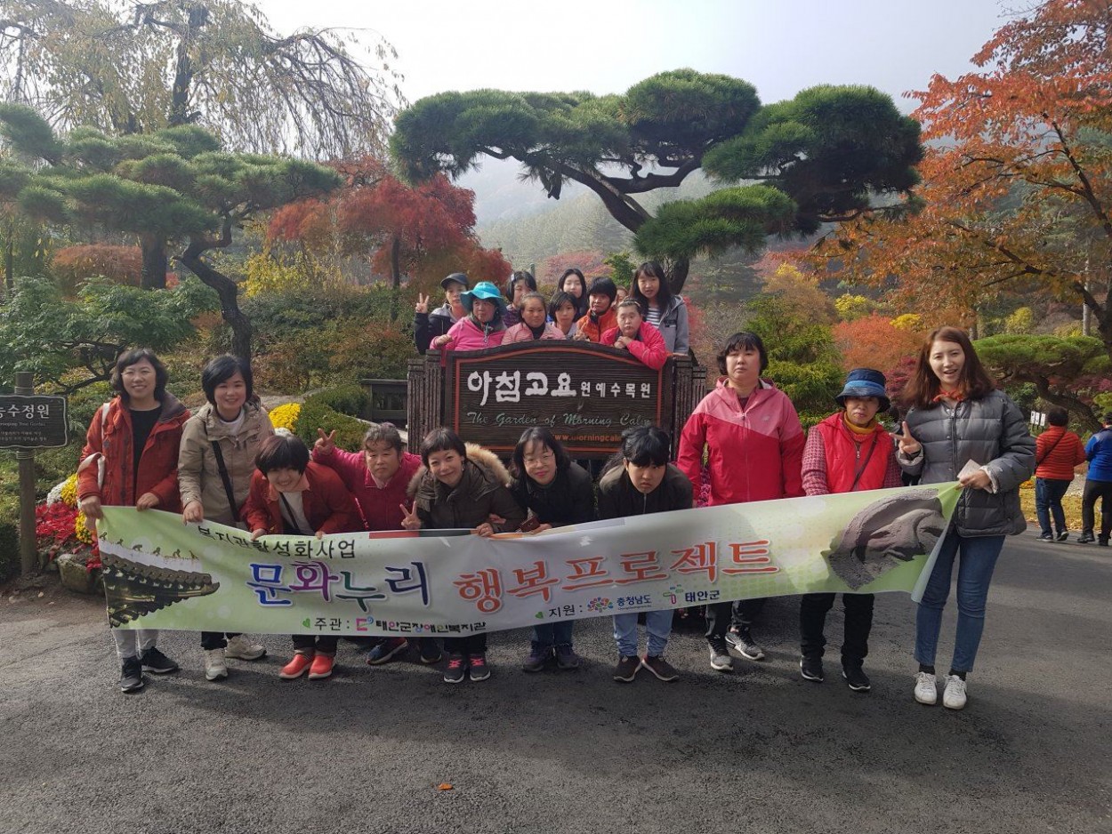 여성장애인들과 1박2일 방연옥 0 1934 2018.10.26 18:00 복지관활성화사업 문화누리 프로젝트로 여성장애인들과 남이섬,아침고요수목원 1박2일 문화탐방 다녀왔습니다. 보호자없이 다녀온 본 문화탐방을 통하여 여성장애인들의 자립능력향상과 아름다운 자연경관을 보고 느낌으로 스트레스를 해소하고 더 나은 내일을 꿈꿀 수 있는 계기가 되었다.