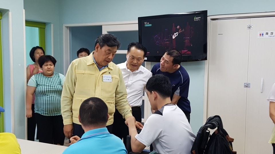 이날 점심 시간이 되어 식사 중 이던 직원들과 장애인 이용 고객들은 가 군수의 뜻밖의 방문에 놀라면서 함께 식판에 식사를 하며 대화의 시간을 갖고 이어 미리 식사한 장애인들이 있는 휴게실도 방문해 커피를 나누며 이용고객들의 어려움과 직원들과 대화를 통해 의미 있는 시간을 가졌다.