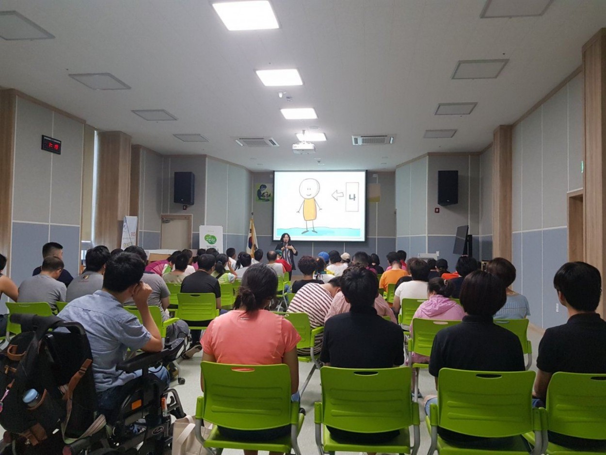 복지관 이용고객대상 성교육 진행 방연옥 0 1746 2018.07.25 14:30 복지관을 이용고객대상 성폭력예방교육 진행 복지관을 이용하는 장애인들에게 성폭력예방교육을 통하여 "행복한 나" "행복한 가정" 행복한 이웃"으로 살아가도록 지원하고자 교육을 진행함. 금번 교육은 어르신장애인대상(7월18일) 발달장애인대상(7월24일)으로 구분하여 2회기로 장애특성에 맞추어 교육을 진행함으로 이해하기 쉬웠으며, 교육을 통하여 나와 다른 성에 대한 올바른 이해를 하며 그 차이를 인정하고 존중함으로써 불평등한 관계를 해소하고 성폭력의 가해자도 피해자도 되지 않도록 교육함.