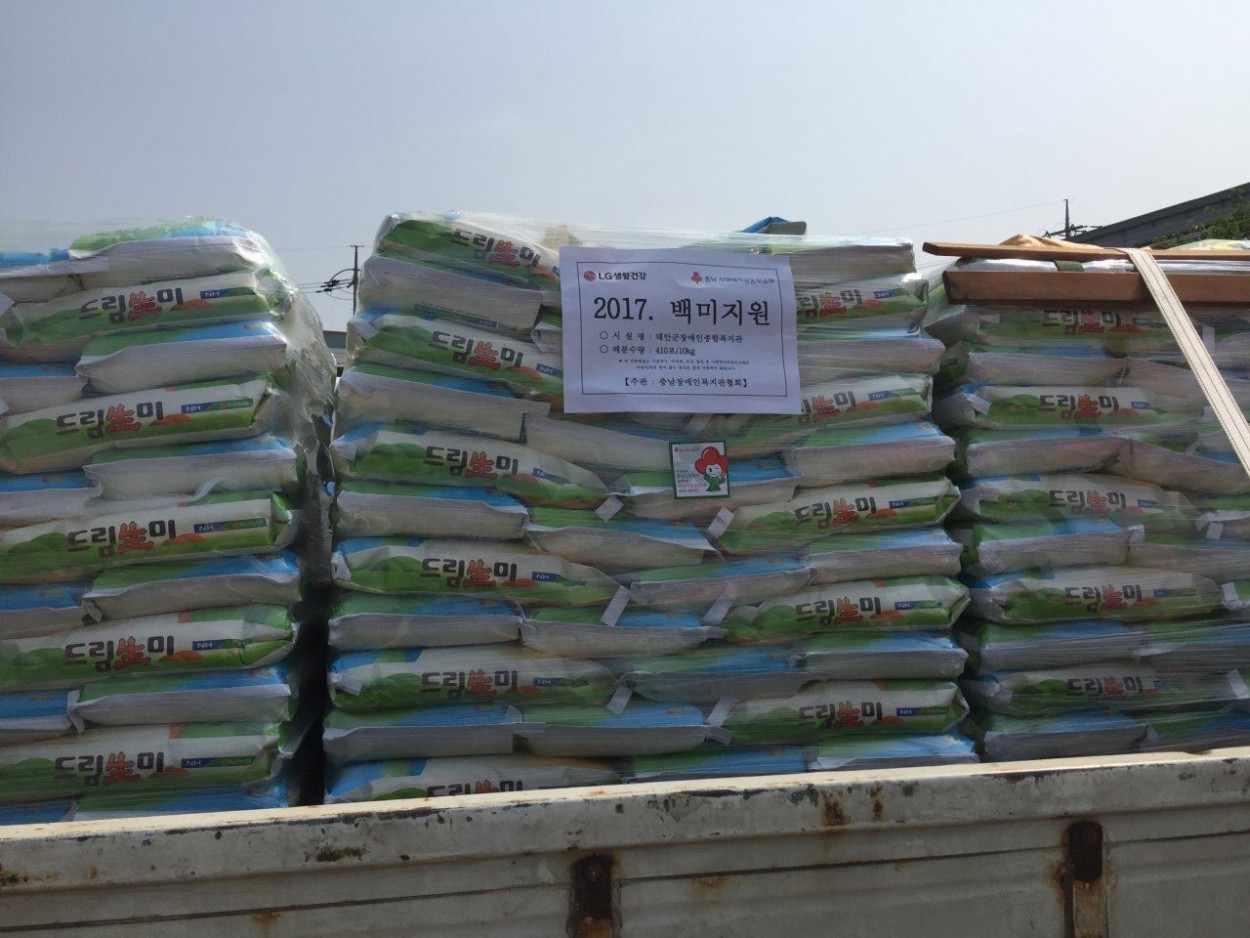 (주)LG생활건강에서 백미를 후원 해주셨습니다. 김기윤 0 1845 2017.06.30 11:58 지난 6월16일 (주)LG생활건강에서 백미10KG 410포를 후원해주셨습니다. 태안군 재가장애인 및 관내이용자분들께 배분하였으며, 경제적으로 어려움이 있는 고객분게 배분함으로쏘 건강한 식생활 제공하며, 정서지원까지 함께 이루어졌습니다.
