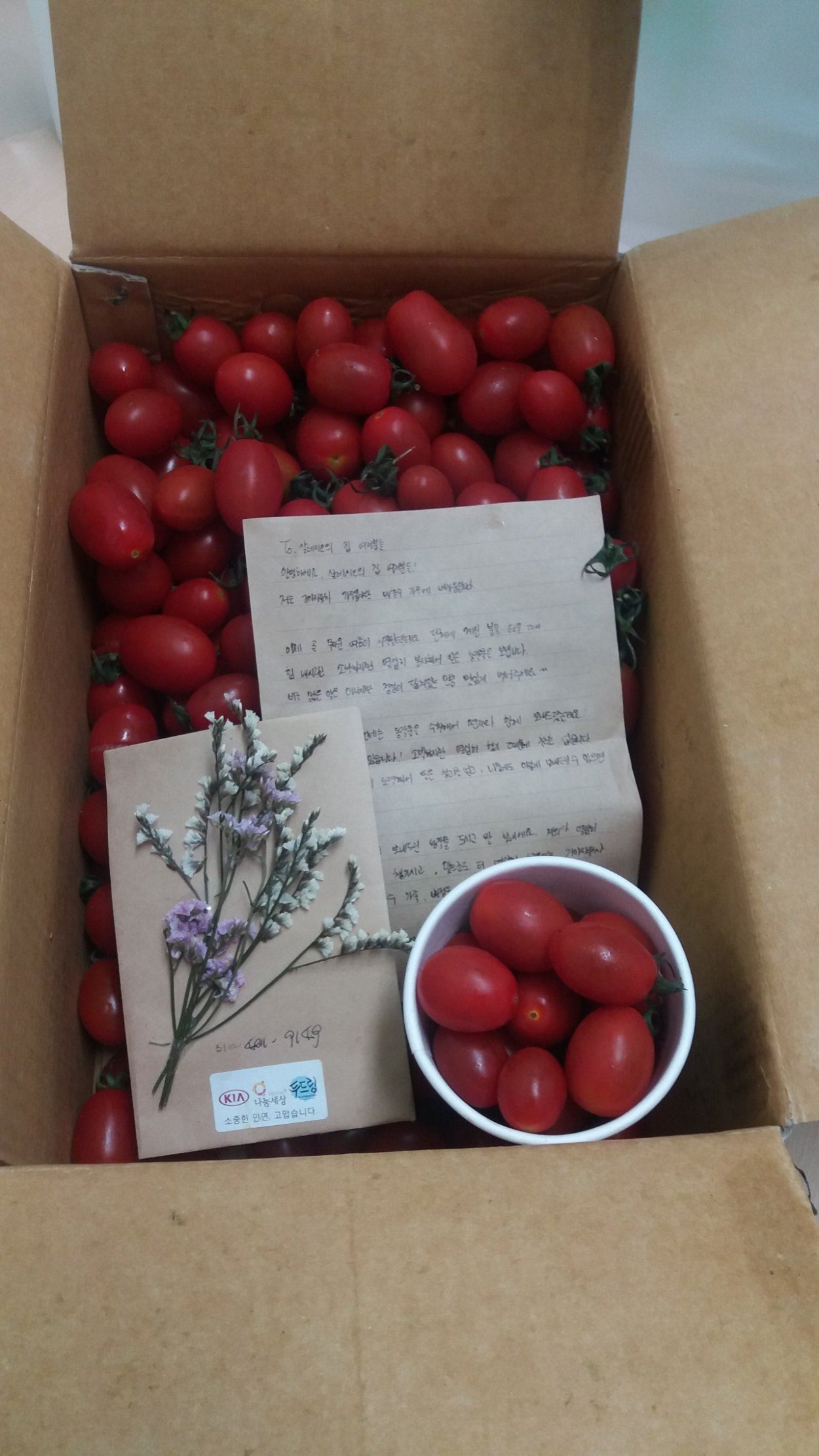 기아자동차 가족봉사단과의 인연 홍경희 1 2228 2017.07.05 13:12 2016년 여름 기아자동차 가족봉사단과의 좋은 인연으로 장애인가족과 하루를 뜻깊게 보낸것도 감사한데, 그 인연을 잊지않고 손수 재배한 방울토마토를 선물해주셨습니다. 직원들과 함께 나누며 옛추억을 함께 나누어 보았습니다. 우리가 사는게 조금 힘들더라도 내 주변에서 나의 가치를 알아봐주고 애정어린 관심으로 응원해주면, 그런 사람이 내곁에 있다는 사실만으로도 커다란 행복과 삶의 용기를 얻는다는 했는데 기아자동차 가족봉사단이 그런 인연이었습니다. 기아자동차 가족봉사단의 이쁜 사랑^^ 기아자동차 가족봉사단 정성스런 마음~~