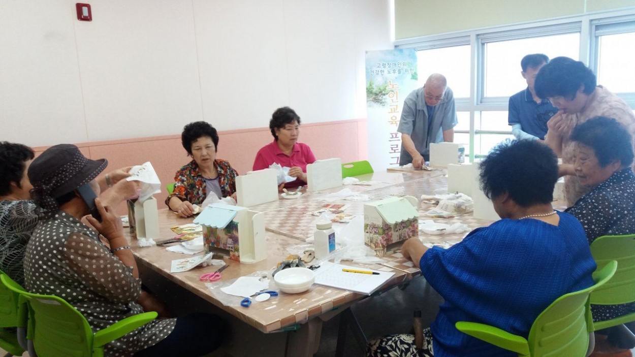 성주재단 토탈공예 마지막 수업 홍경희 0 2161 2017.07.27 17:19 3월부터 시작한 토탈공예는 30회기로 오늘 마지막을 아름답게 장식하였다. 고객의 만족도가 매우 높은 토탈공예는 가족의 화합과 친밀도를 높이는 계기를 마련하였다. 냅킨아트 커피함 만들어 본인의 솜씨를 자랑하는 시간~~ 고령장애인들이 자신의 작품에 몰두하는 모습이 아름답습니다