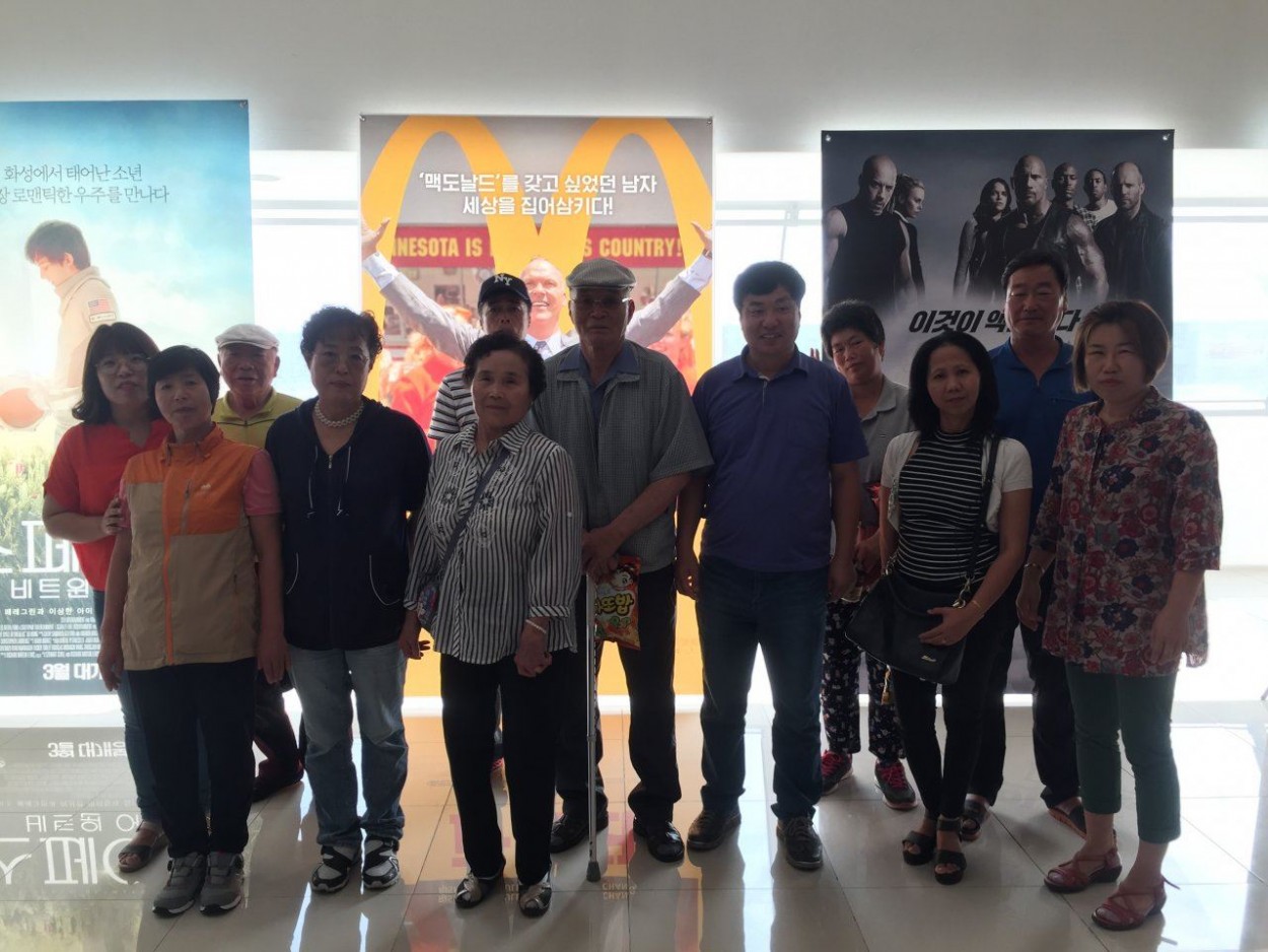 행복프로그램 문화탐방(영화관람) 김기윤 0 1739 2017.08.31 14:03 지난 8월25일 행복프로그램 문화탐방으로 영화관람을 하고 왔습니다. 요즘 핫이슈인 택시운전사 라는 영화를 봤으며, 즐거운 식사까지 진행되였습니다. 문화활동을 통한 문화적 단절을 해소하는 성과를 이뤘습니다.