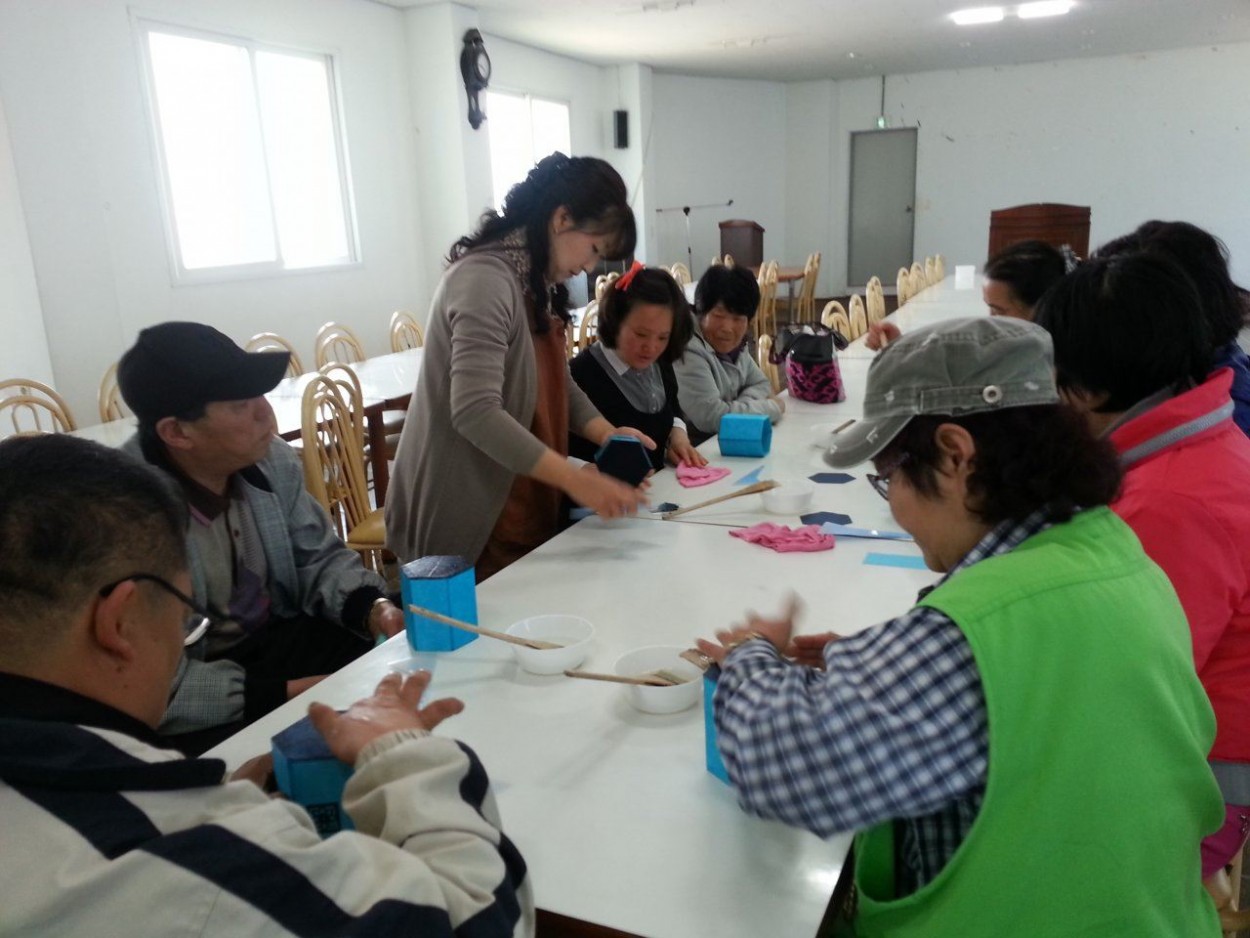 소원면 재가장애인과 함께 한지로 예쁘게 연필꽂이를 만들었어요~~