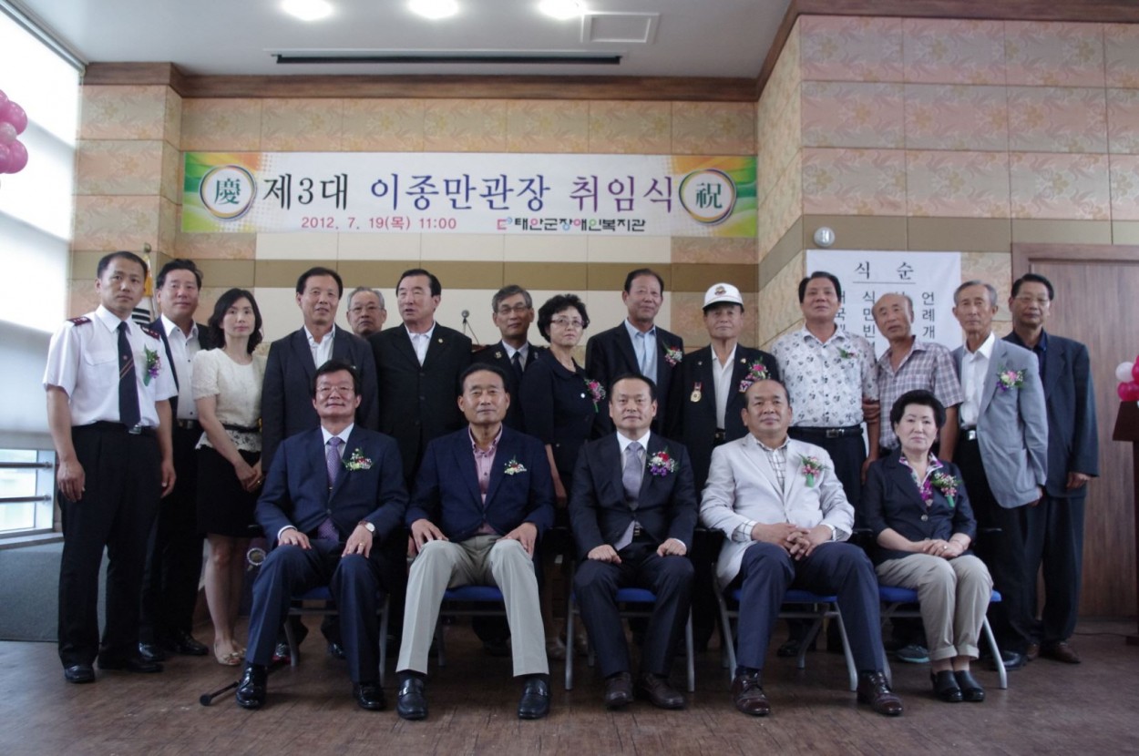 태안군장애인복지관 3대 이종만 관장의 취임식이 지난 19일에 복지관 3층 강당에서 지역장애인과 관내 사회복지 등 유관기관 관계자 100여명이 참석한 가운데 개최되었다.