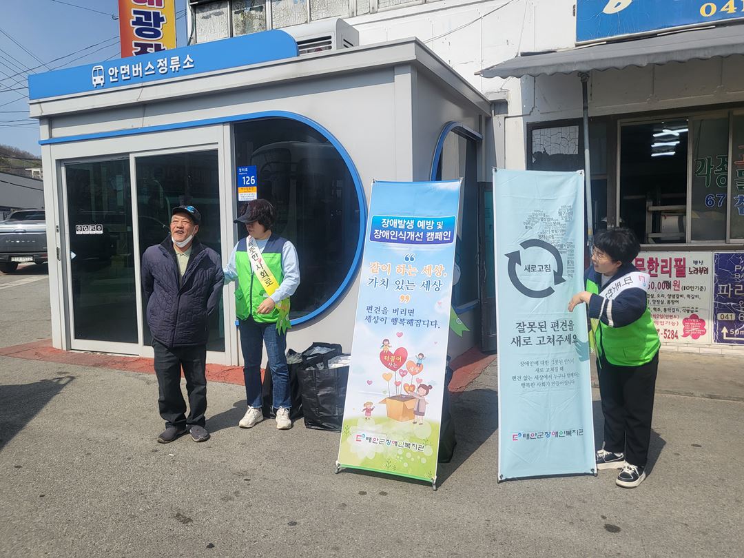 장애인식개선 캠페인 기획연계팀홍경희 0 753 2025.04.17 11:43 복지관 장애주간을 맞이하여 안면읍 터미널 인근과 태안읍 4개학교 학생들을 대상으로 장애인식개선 캠페인을 진행하였습니다.지역주민 및 학생들을 대상으로 장애에 대한 편견을 없애고 올바른 이해를 위해 적극적인 홍보를 실시하였습니다.