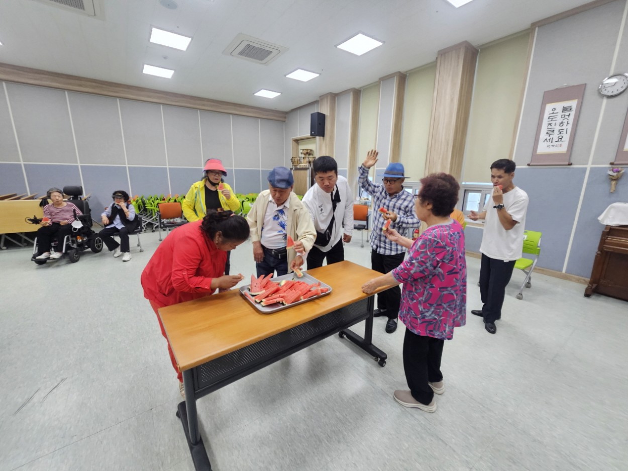2025년 상반기 도활성화 사업 "노래교실" 마무리 평생교육지원팀윤정현 0 1045 2025.06.27 11:57 2025년 상반기 노래교실을 시작하기전 시원하고 달콤한 수박을 함께 먹으며 더위도 식히고 담소도 나누었습니다.수업시작~ 선곡한 노래를 즐겁게 부르며 참여하고 다함께 화이팅~~~ 하며 단체사진으로 마무리~~~^^(상반기 노래교실 수업에 적극적으로 참여해 주셔서 감사합니다.)