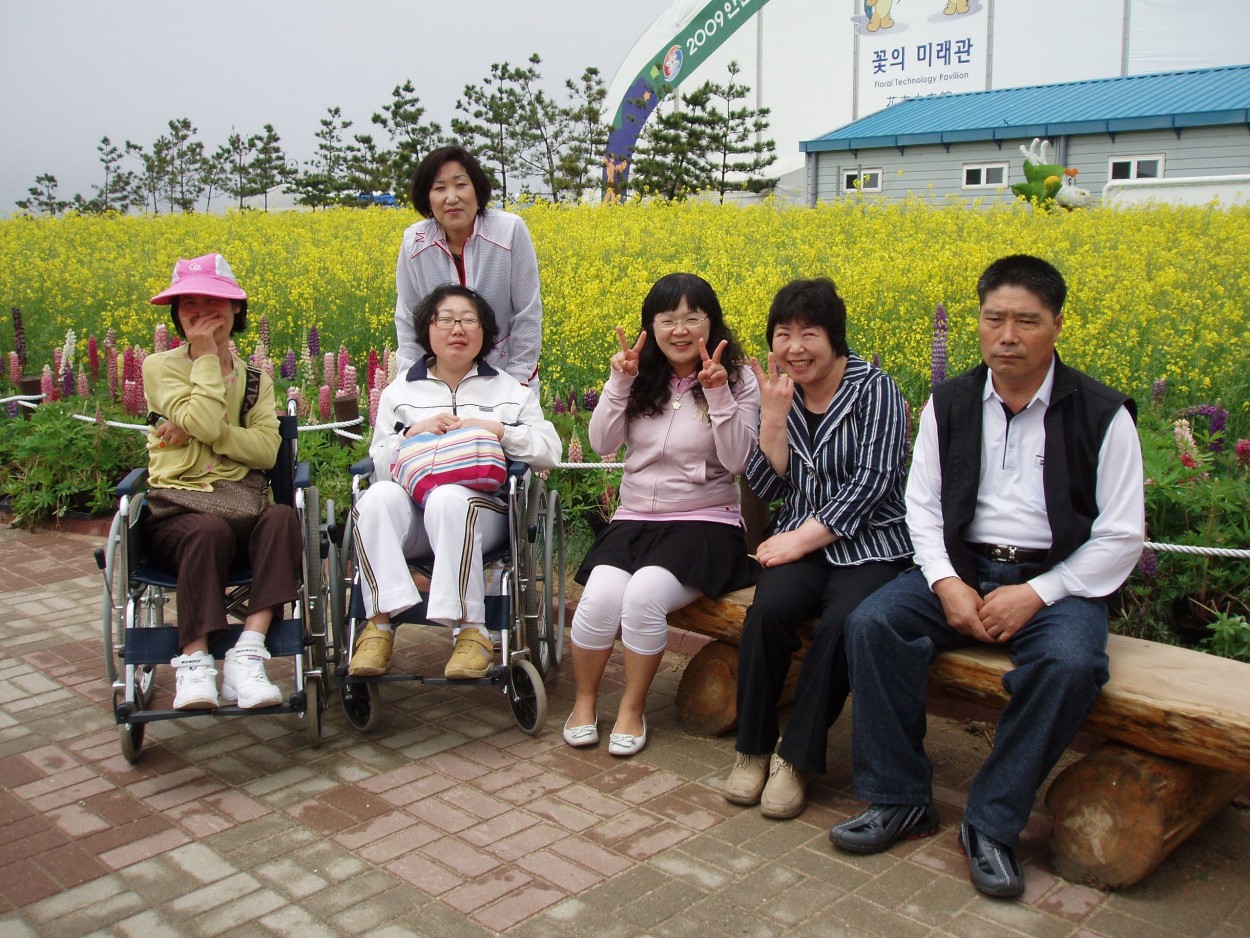정보화교육생들과 함께 꽃박람회장에서 추억을 간직하기 위해 기념으로 찰칵!