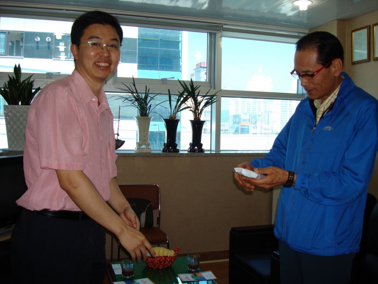 2008년 8월 28일(수) 14:00 SK텔레콤 Network기획본부 이종봉 본부장님 이하 직원이 모은 태안사랑상품권을 본 복지관 운영위원이신 신현교 위원에게 전달하였다.