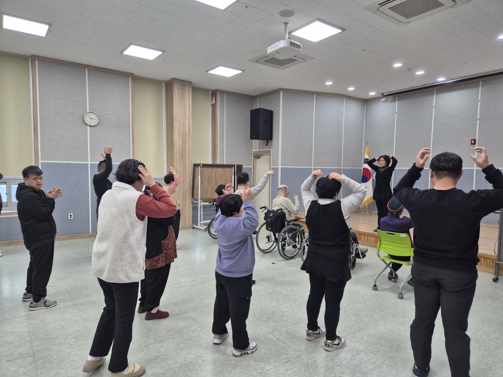 도 활성화 사업 <라인댄스 프로그램> 진행! 가족문화지원팀송수화 0 119 02.23 08:36 성인 중증장애인 주간보호 대상자로 매주 금요일 10시부터 11시까지 라인댄스를 진행하였습니다 ! 머리부터 발끝까지 최대한 동작들을 움직이고 반복해서 따라해봄으로서 자신감을 높이는 시간이 되었습니다 ! ^ ^