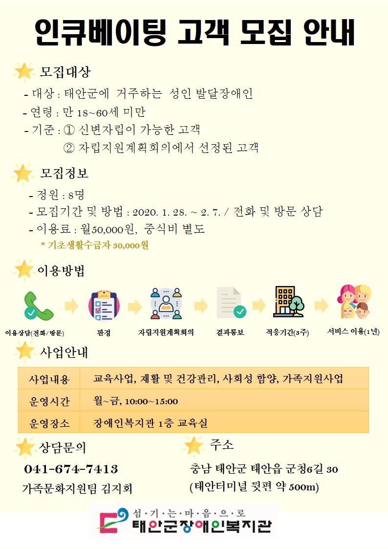 성인발달장애인 인큐베이팅 사업 고객 모집 안내